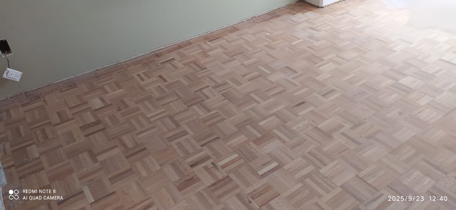 - Colocación y mantenimiento de piso de parquet, pulido y barnizado con dos manos de sellador y dos manos de barniz Polyform 3000.